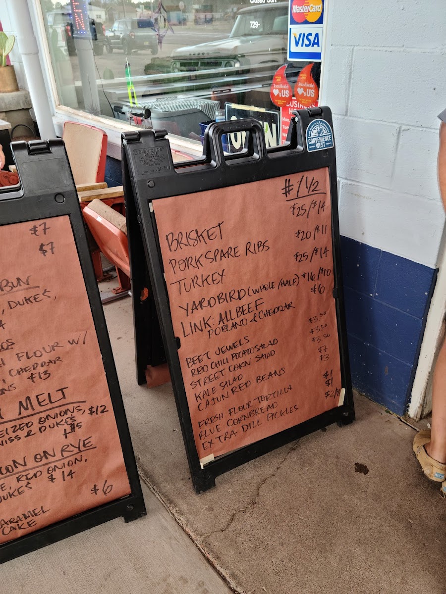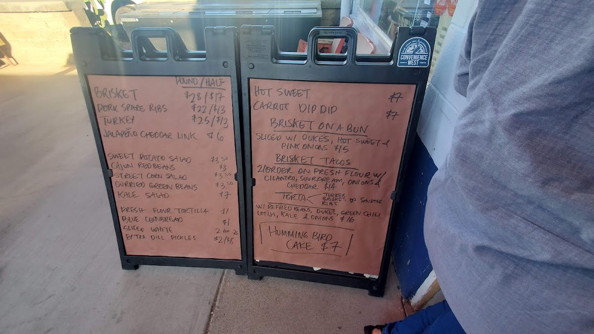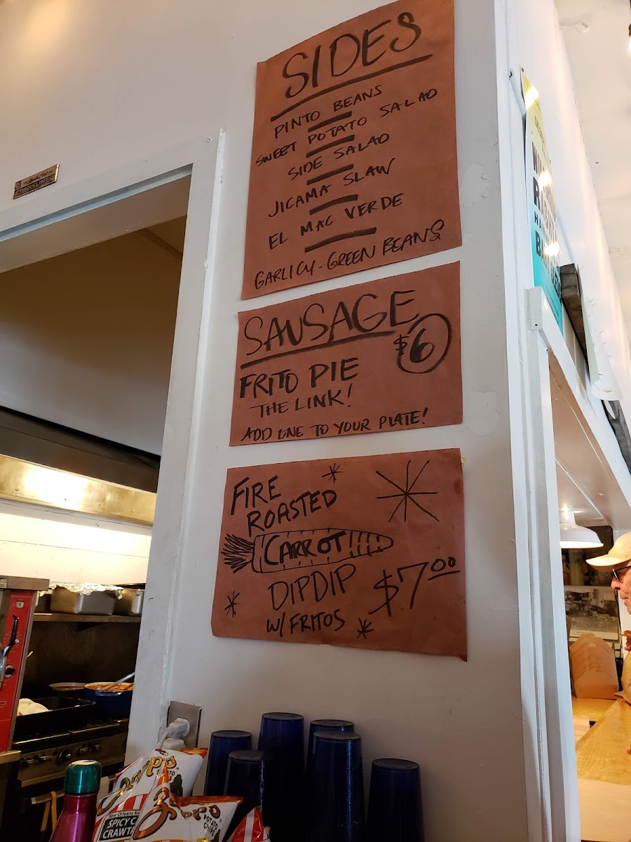 The menu reads like a focused celebration of Texas barbecue, where smoke, simplicity, and hearty portions define the experience. Dishes such as Pork Spare Ribs Turkey and Sweet Potato Salad and Pork Ribs Pickles and Carrot Coleslaw balance richness with freshness, using crisp sides to cut through deep, slow-cooked flavors. Beef lovers are especially well served: Brisket Tacos, the Brisket Sandwich, Beef Rib, and the standout Prime Brisket Plate with Asadero Sausage showcase tender meat, confident seasoning, and a clear respect for traditional barbecue technique. Plates like the 3 Meat Plate allow diners to sample across the menu, while Pulled Pork delivers the expected comfort and smoky pull that defines the genre. For something lighter but still satisfying, the Tri Tip Salad and Chicken Potato Salad offer protein-forward options without losing the restaurant’s rustic identity. Breakfast-style comfort appears in Sausage Biscuits, reinforcing the all-day appeal of the menu. Drinks such as Beer fit naturally into the casual, communal vibe, while Cobbler provides a warm, nostalgic finish that feels earned after a meat-heavy spread. Overall, the menu feels intentional and cohesive, favoring well-executed classics over excess, and leaving a strong impression of a kitchen that knows exactly what it wants to serve and how its guests want to feel while eating it.